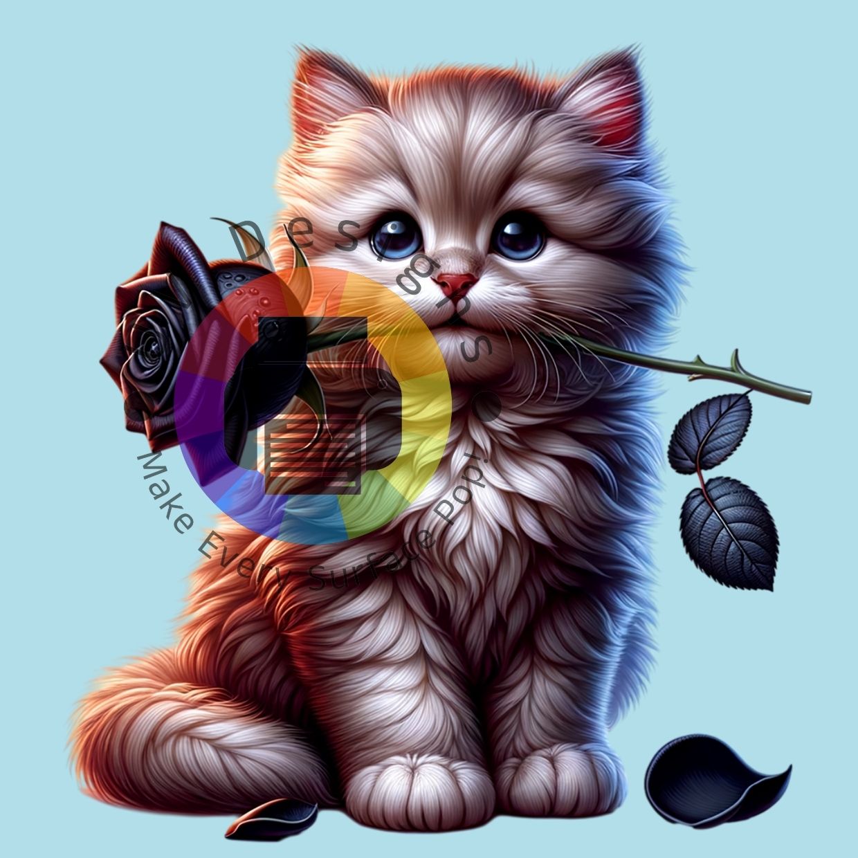 Kat met zwarte roos