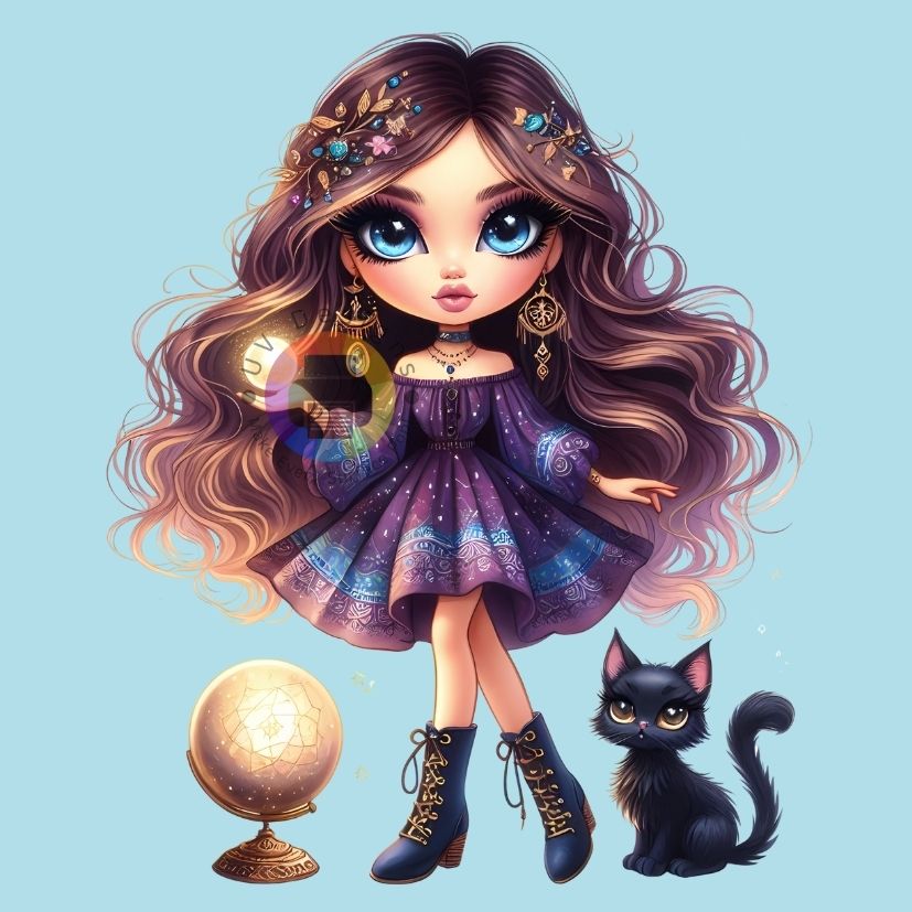 12 cm Waarzegster met kat nr 3